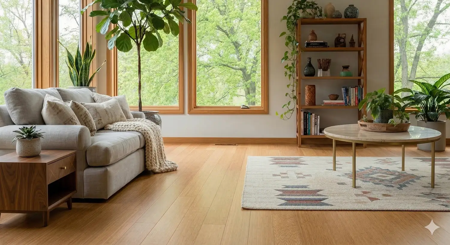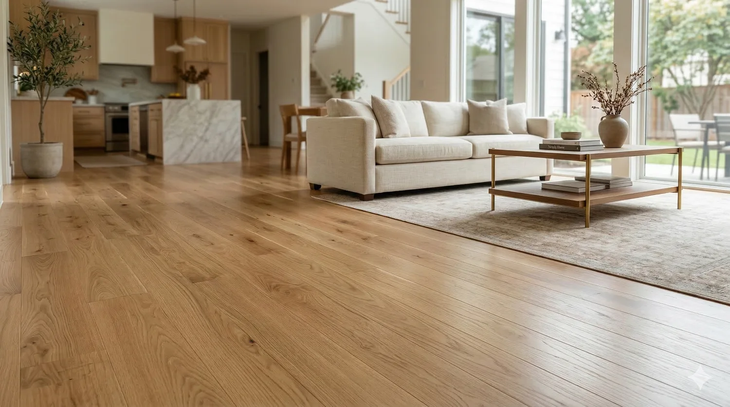 Maple offers smooth, consistent grain with exceptional hardness. Perfect for modern homes, maple maintains its pristine appearance even in high-traffic areas.